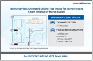 मारुति सुज़ुकी के कॉर्पोरेट मामलों के वरिष्ठ कार्यकारी अधिकारी, श्री राहुल भारती ने कहा, “राज्य में ऑटोमेटेड ड्राइविंग टेस्ट ट्रैक शुरू करने के लिए तमिलनाडु सरकार के साथ साझेदारी करके हमें गर्व महसूस हो रहा है। ऑटोमेटेड ड्राइविंग लाइसेंस टेस्ट, ड्राइवर के कौशल और ज्ञान का एक व्यापक, कठोर, पारदर्शी और कुशल मूल्यांकन करता है। इस प्रक्रिया के माध्यम से केवल योग्य और कुशल आवेदकों को ही ड्राइविंग लाइसेंस प्राप्त होता है। हमारा मानना है कि इन कुशल ड्राइवरों द्वारा अनुशासित ड्राइविंग सड़कों को सुरक्षित बनाने में योगदान दे सकती है। यह पहल तमिलनाडु में सड़क सुरक्षा को मज़बूत करने की दिशा में मारुति सुज़ुकी का एक विनम्र योगदान है।