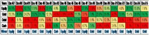 नीचे तालिका में दिखाया गया है कि 2007 से अब तक अलग-अलग एसेट क्लास ने बेहतरीन परफॉर्मेंस दी है। क्‍योंकि इनके मूवमेंट्स परफेक्‍ट तरीके से आपस में जुड़े नहीं हैं, इस वजह से एक एसेट दूसरे को कई बार ऑफसेट कर सकता है। इससे कुल मिलाकर सभी परिणामों को सपोर्ट मिलता है।